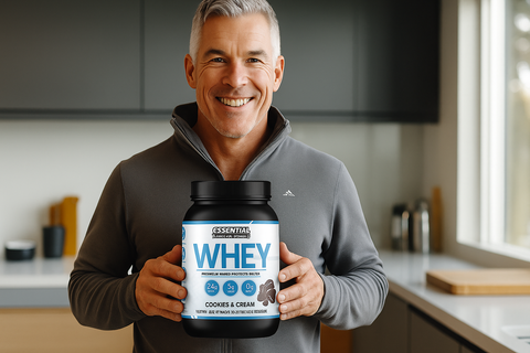 Essential Whey Protein – Cookies & Cream is a high-quality protein supplement featuring both whey protein concentrate and isolate, formulated to support lean muscle growth, faster recovery, and nutritional balance.