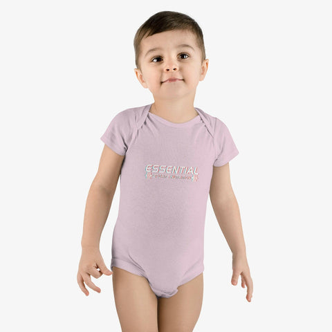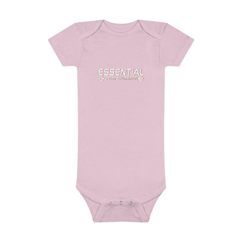short-sleeve baby Onesie® is built from 100% cotton rib. This makes for a comfortable, secure fitting for newborns and toddlers. The neckline is constructed with a lap shoulder. This inclusion assists with manipulating the fabric around the baby’s head. The bottom has a snap closure - designed with easy changing in mind. Both legs have ribbed openings for stability.