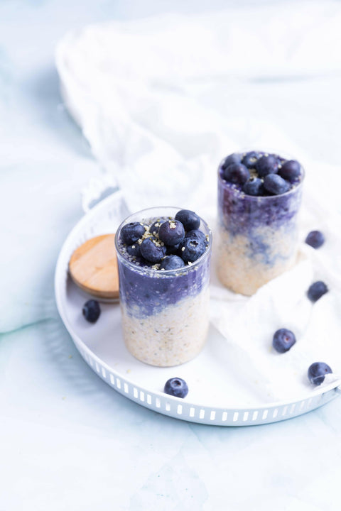 Overnight Vanilla Blueberry Protein Oats | Recipe Download